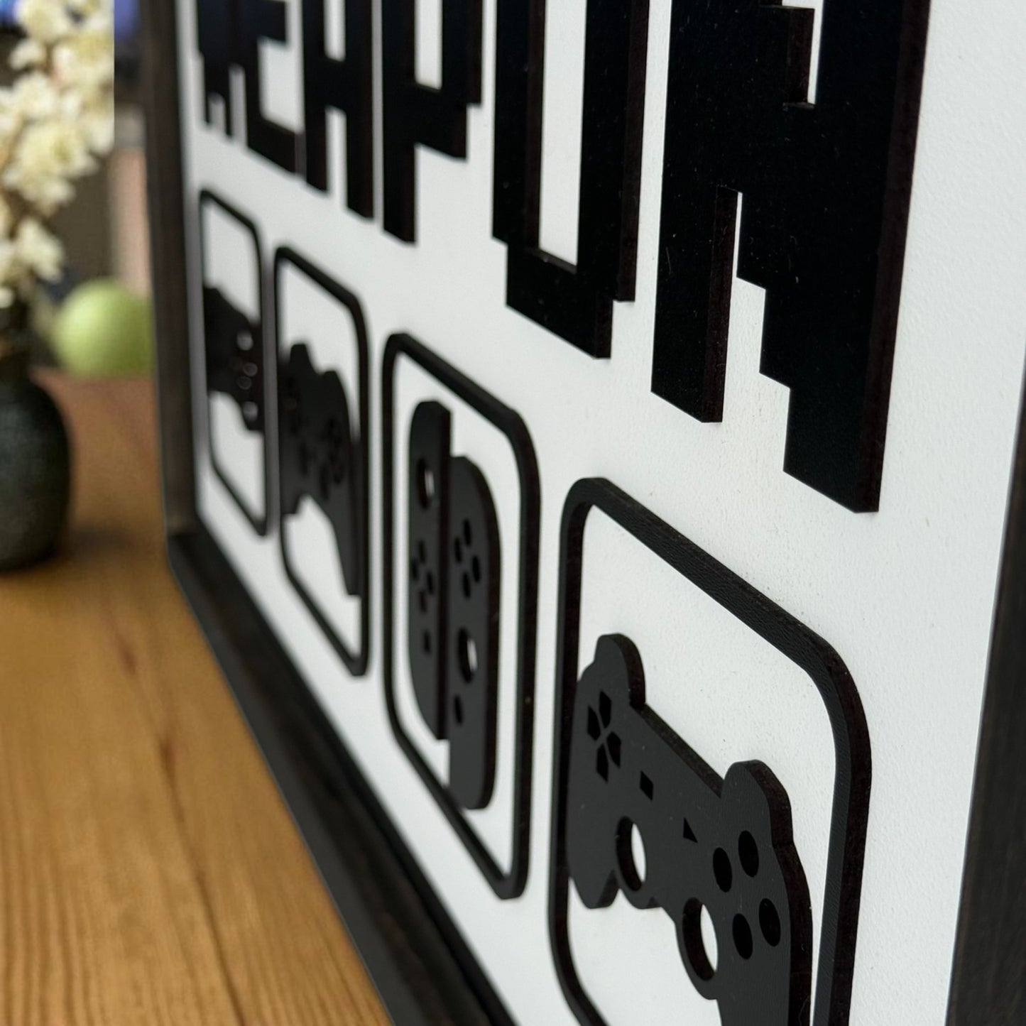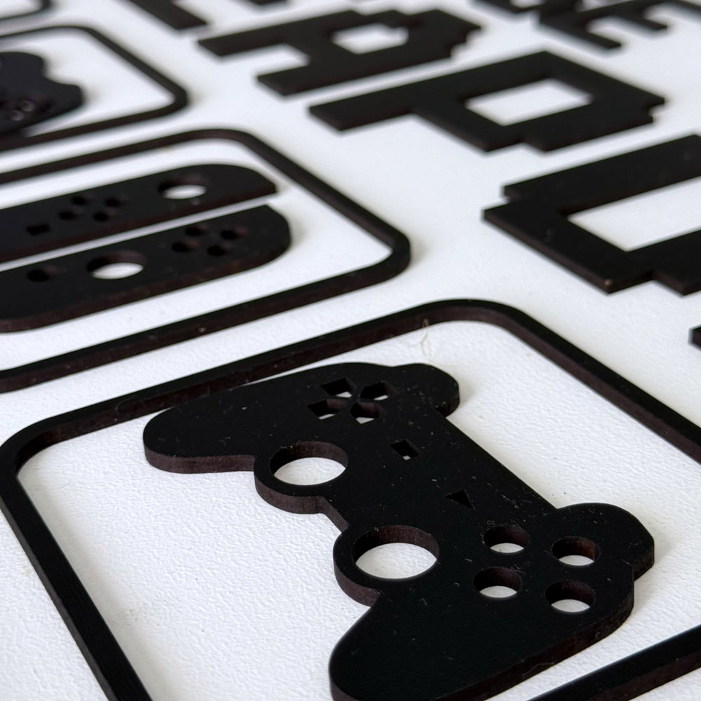 Letters + Controllers: Black 3D laser-cut, raised for extra depth and wow factor