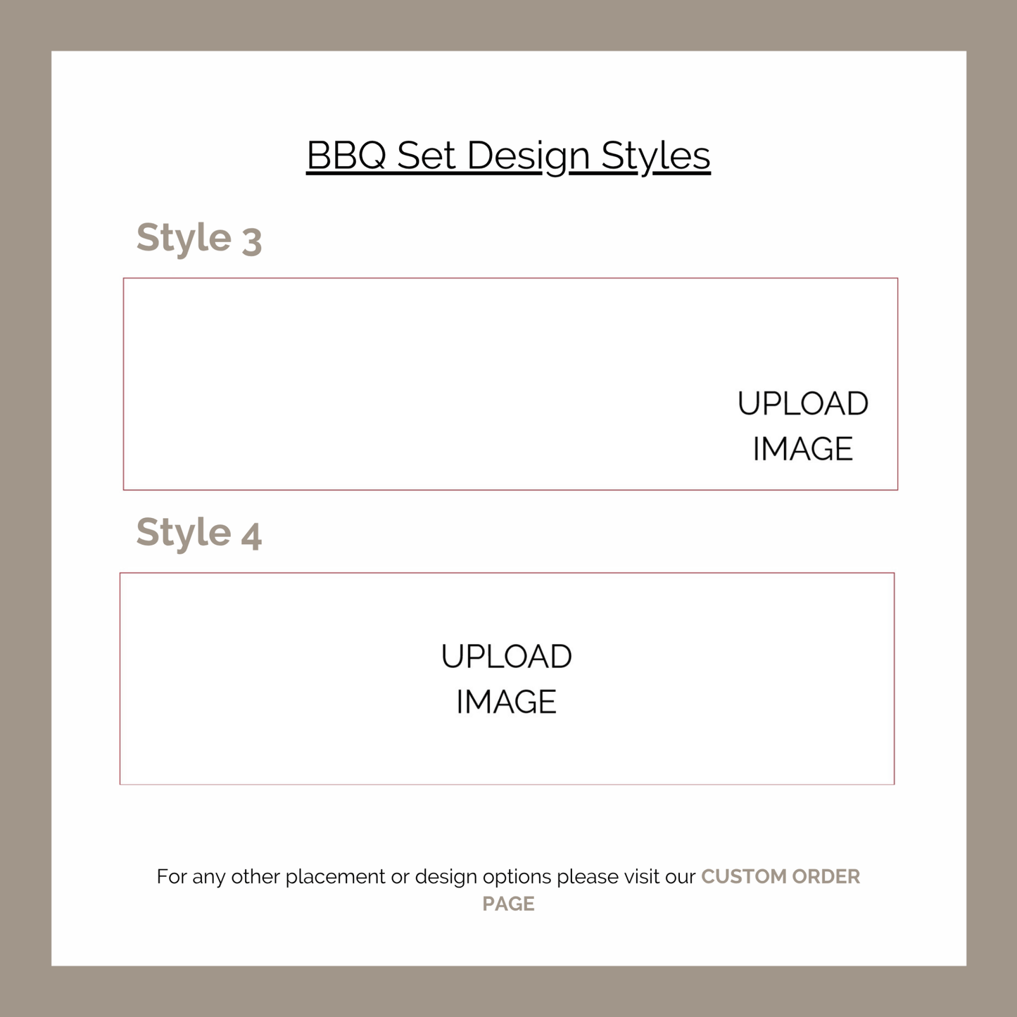 Upload your required graphic with our UPLOAD button or visit our Custom Order page here to fully customize