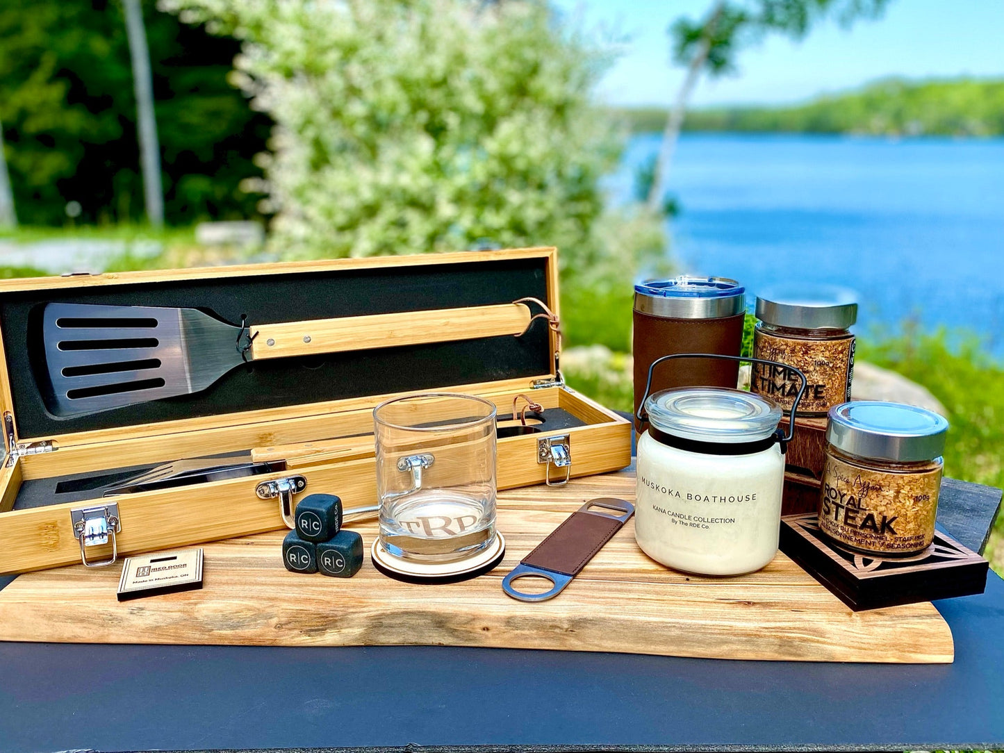 IGNITE their game with this 3 pc Bamboo BBQ Gift set and matching case. This gift has the tools to fire up your Grill Masters skills while your all enjoying the true outdoors. Whether your BBQing in the summer or using the charcoal grill in midst of winter on the driveway (as we do), this set is perfect for your grilling-guru!