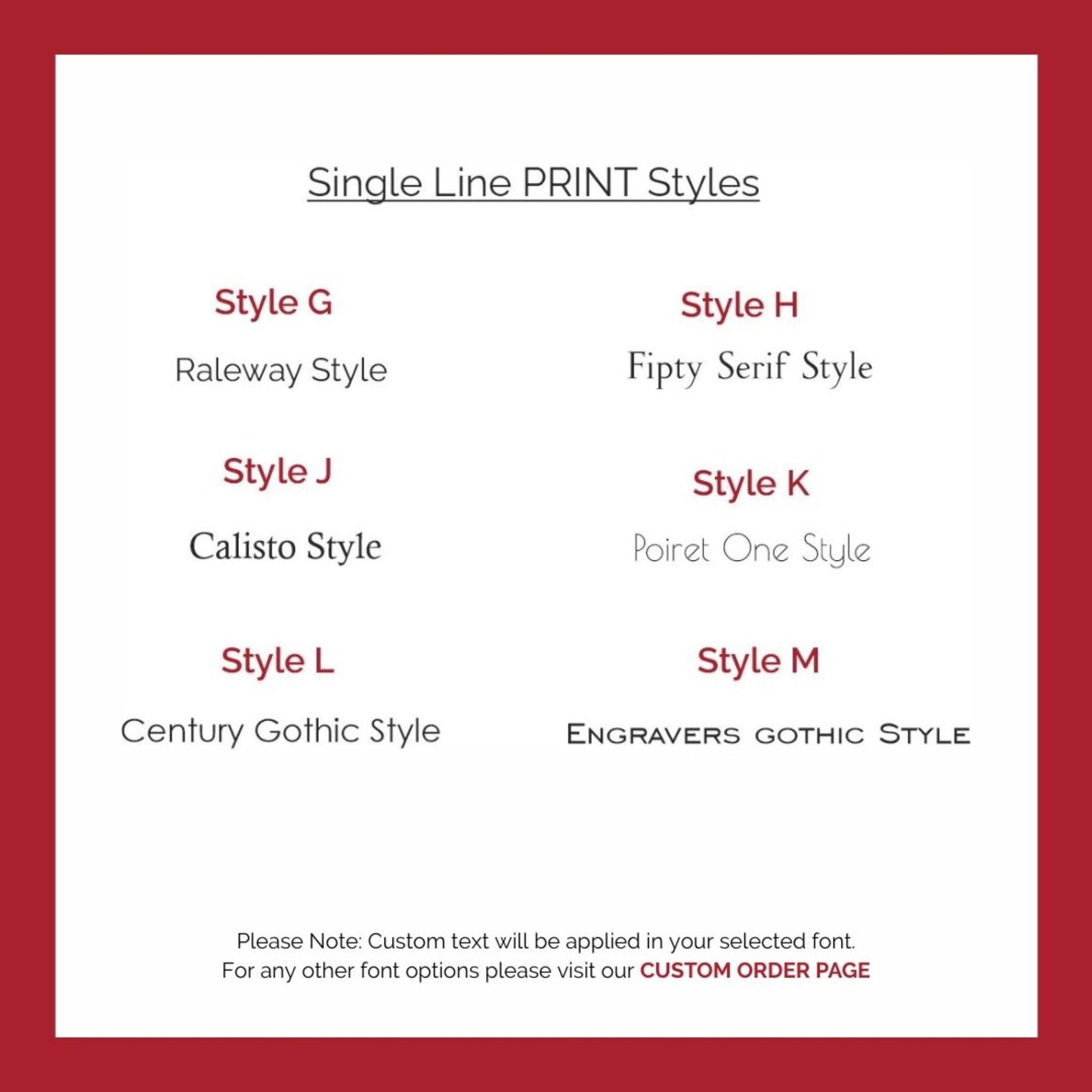 - Available options for one sided engraving on our drop down menus above OR